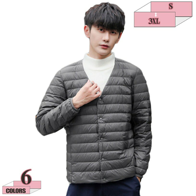 保温 防寒 撥水 薄手 軽量 細身 スリム インナー ライトダウン クルーネック Vネック ダウンジャケット 秋冬 メンズ ジャケット