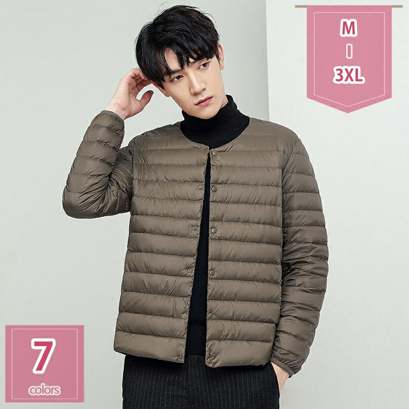 1000円OFFクーポン ライトダウン クルーネック アウター チュニック 上着 ダウンジャケット メンズ 軽量 インナーダウンジャケット 防寒 防風 暖かい 保温 通気 軽量 通勤 おしゃれ シンプル 薄手 ダウンコート 秋冬アウター コート holosbird-goods1