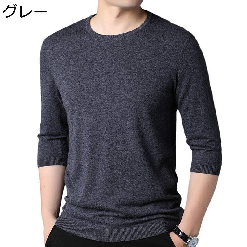 Tシャツ 長袖 メンズ セーター カジュアルシャツ 無地 薄手 軽量 春夏秋 クルーネック 韓国風 ファッション 大きいサイズ フィット インナー プルオーバー 普段着 お出かけ オフィス