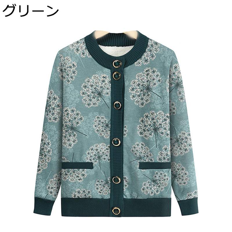 裏起毛 カーディガン 高齢者 婦人服 ニット レディース クルーネック セーター 柔らか 保温防寒 暖かい 長袖 ストレッチ アウター インナー ジャケット お洒落 お誕生日プレゼント ママへ