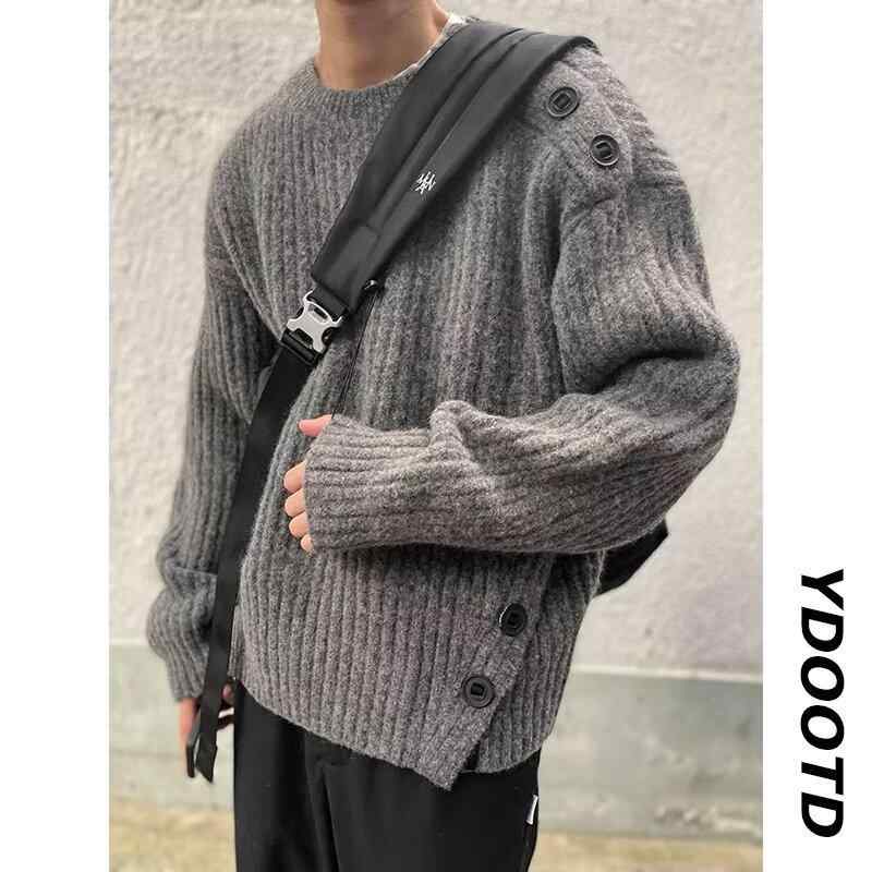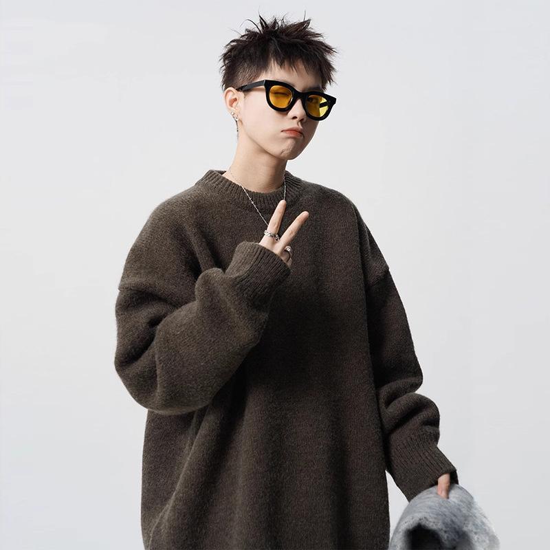 ・カテゴリ: ニット・タイプ: プルオーバー・シルエット: ルーズ・ネックライン: クルーネック・厚さ: 普通・スタイル: シンプル・柄: 無地・主な素材: ポリエステル・対象: 成人男性・カラー: ダークグレー・サイズ展開: M、L、XL、XXL