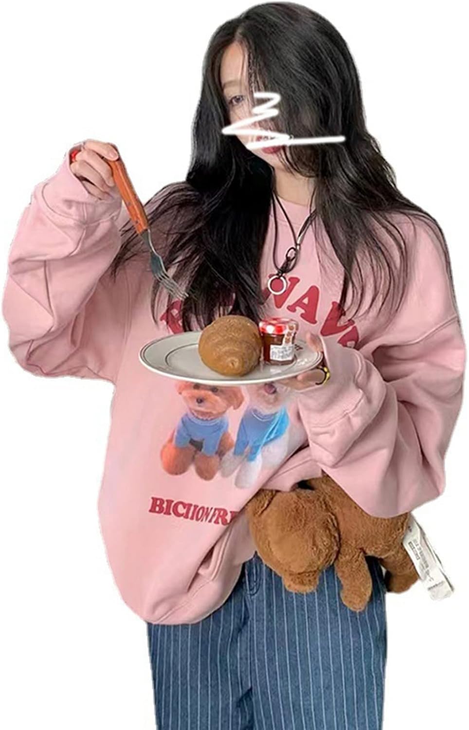 【20%OFFクーポン〜】パーカー トレーナー 春秋 レディース 犬柄 英字 長袖 クルーネック ドロップショルダー 薄手 防風 トップス オーバーサイズ ゆったり ビッグシルエット キュート カジュアル スウェットシャツ お