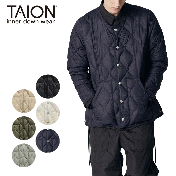 タイオン TAION TAION-104 BASIC CREW NECK BUTTON INNER DOWN JACKET ベーシック クルーネック ボタン インナーダウン ジャケット 800FP 羽毛 通勤 アウトドア キャンプ ストリート アウター 保温 防寒 防風 定番 メンズ レディース ユニセックス 4カラー 国内正規 2024AW