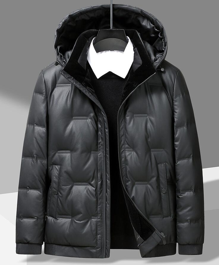 2024年/新販売/ダウンジャケット コート/メンズ ジャケット 無地 長袖 コート トップス メンズウェア 大きいサイズ 防風 防寒 ダウン入る ゆったり 体型カバー 男性 クルーネック カジュアル 帽子付く 高品質 お買い特 ミドル丈 レザーダウンジャケット