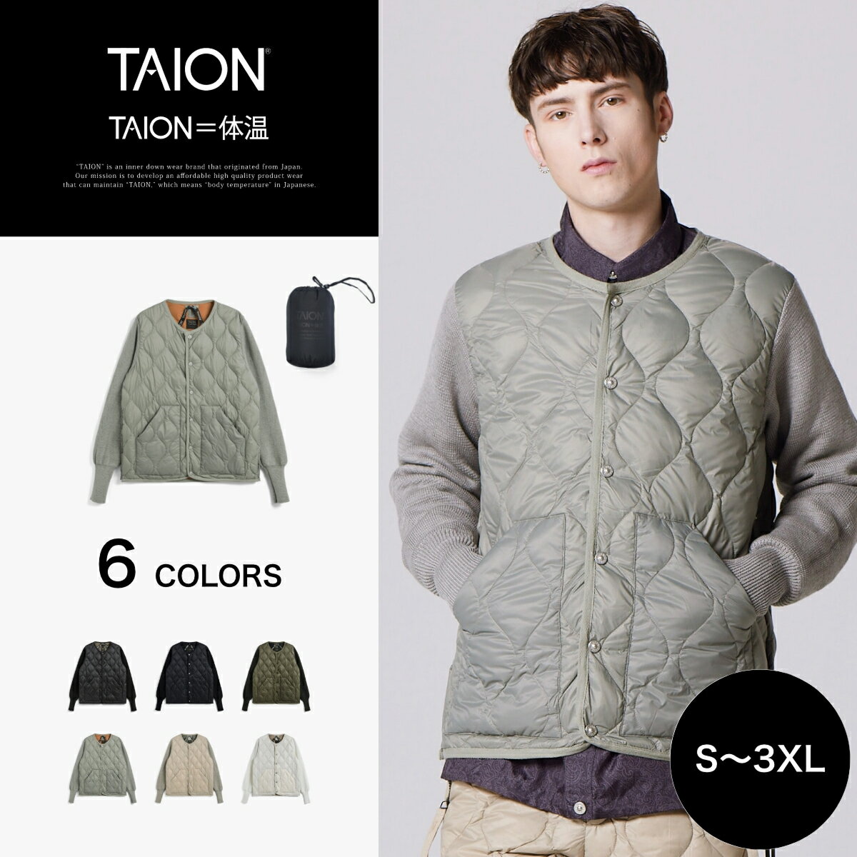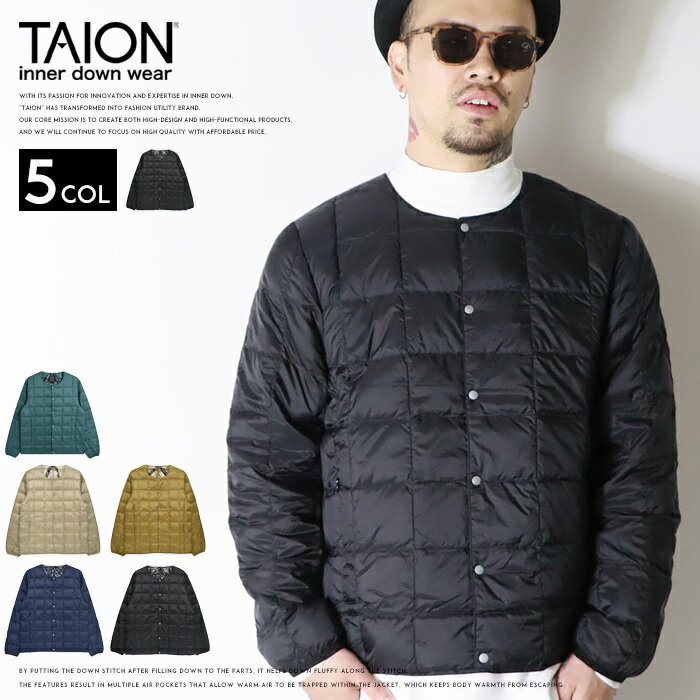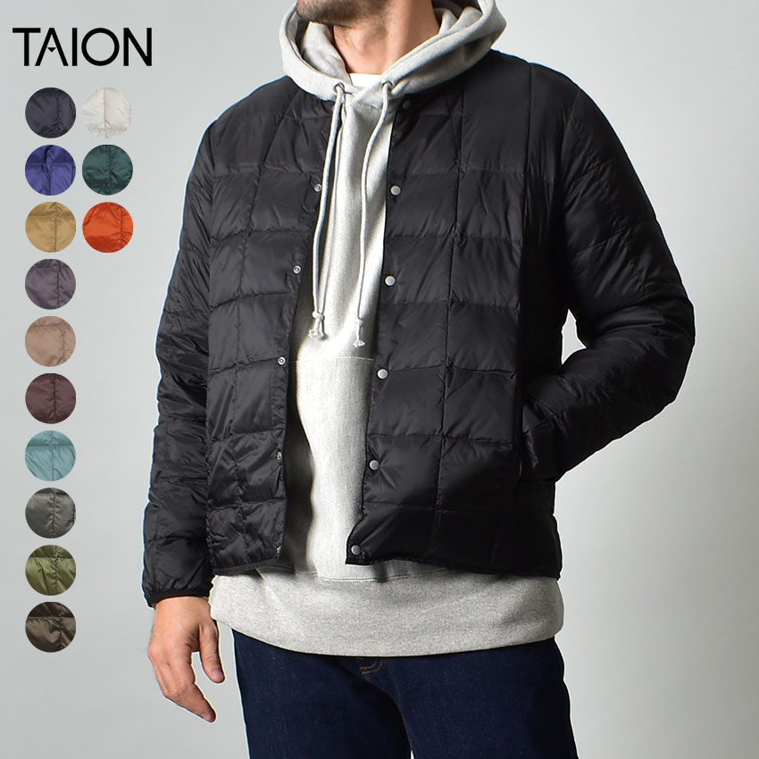 タイオン クルーネックボタン インナーダウンジャケット ダウンジャケット TAION CREW NECK BUTTON DOWN JACKET メンズ TAION-104 ブラック 黒 ネイビー ベージュ グレー カーキ ブラウン ブルー インナーダウン ダウンジャケット