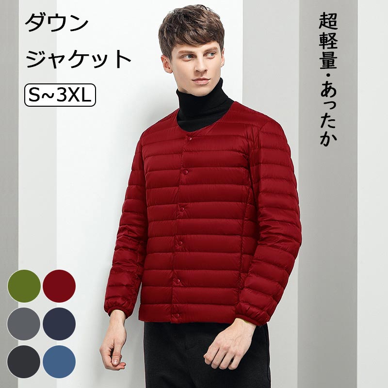 ダウンジャケット メンズ 防寒 メンズ 6色 超軽量 タイトフィット シンプル 無地 アウター 撥水 防寒着 防風 ゴルフ ジョギング ビジネス ギフト 細身 インナーダウン ジップアップ クルーネック 釦 リアルダウン 防寒 暖かい 無地 重ね着 アウトドア