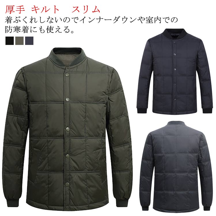ダウンジャケット メンズ インナーダウン 軽量 暖かい ライトダウン ボタン アウター キルティング クルーネック 防寒 軽い 無地 重ね着 アウトドア 秋 冬 秋冬 大きいサイズ 紳士 シニア ダウンジャケット 送料無料