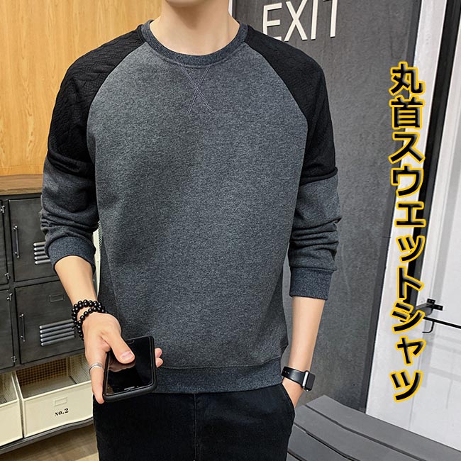 トレーナー メンズ 長袖 メンズ春物 トップス クルーネック 春物 スウェット 切り替え プルオーバー ファッション