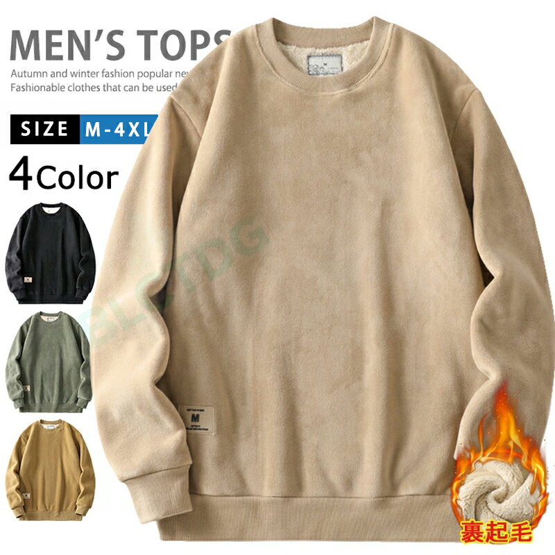 スウェット メンズ フリーストレーナー 長袖 裏起毛 トレーナー クルーネック プルオーバー あったかインナー カットソー 防寒 厚手 無地 ボアトレーナー メンズトレーナー ゴルフウェア アメカジ ストリート ルームウェア パジャマ 秋服 冬服 冬物