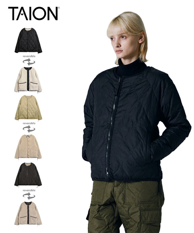 TAION タイオン ユニセックス レディース ダウンジャケット ミリタリー リバーシブル クルーネック ダウンジャケット TAION-R104BML-1 アウター トップス インナーダウン ダウン 軽量 ギフト 防寒 耐久性 メンズ