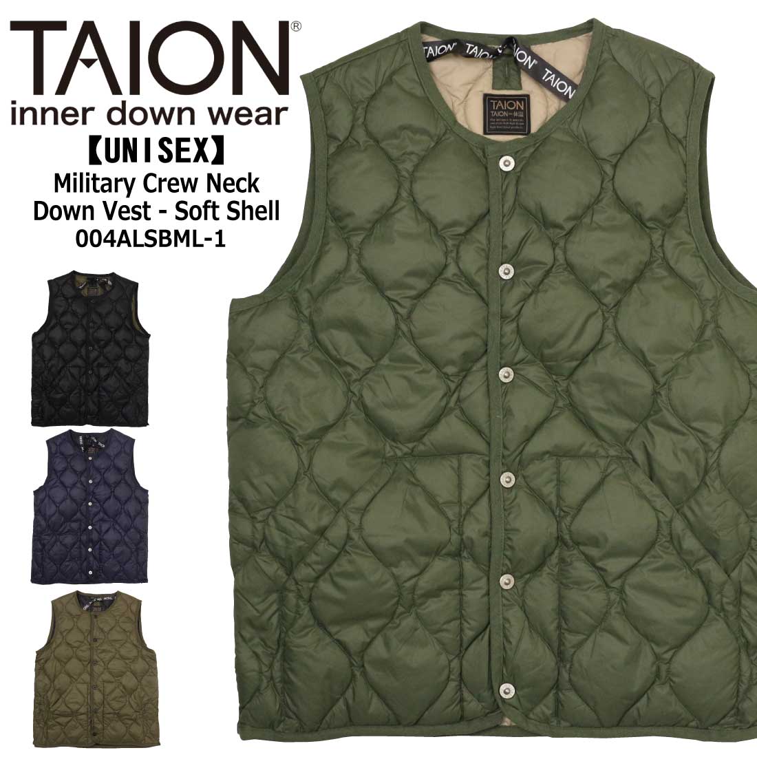 TAION タイオン ダウン ベスト 004ALSBML-1 ミリタリー クルーネック ダウンベスト-ソフトシェル ユニセックス MILITARY LINE