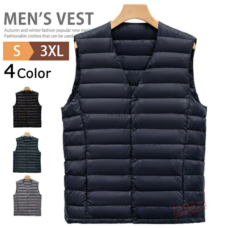 ダウンベスト メンズ インナーダウン キルティングベスト ライトダウンベスト ライトダウン アウター 軽い 暖か あたたかい 防寒 無地 Vネック クルーネック ビジネス カジュアル ダウンカーディガン 収納袋 ポーチ付き コンパクト 秋 冬 春 おしゃれ