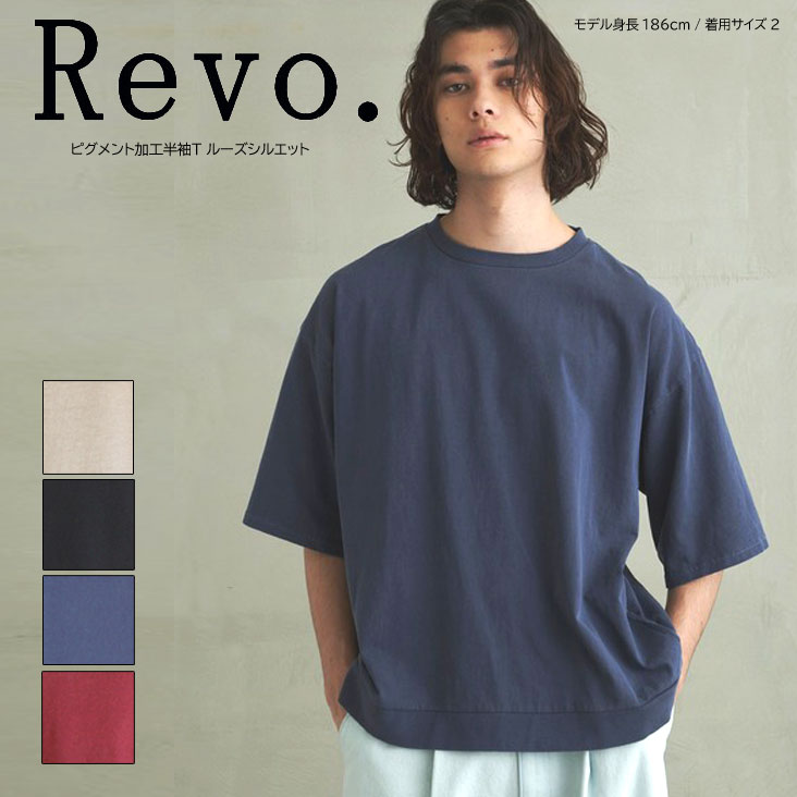 Revo. レヴォ ピグメント加工半袖T ルーズシルエット Tシャツ トップス 五分袖 ゆったり しっかり 綿100% メンズ 男性 オーバーサイズシルエット 無地 シンプル クルーネック リブ ポケット 上品 カジュアル 大人 おしゃれ かっこいい トレンド 人気 シルエット
