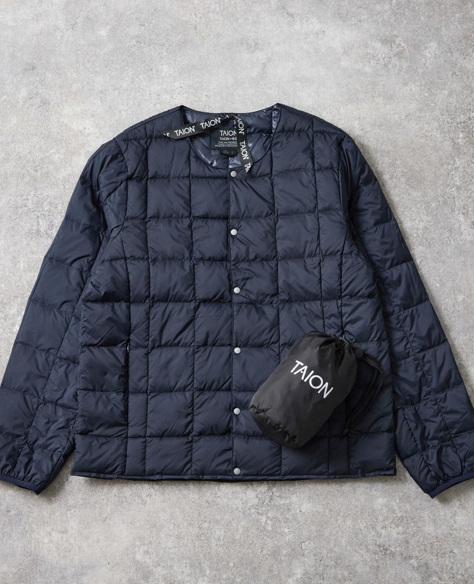 タイオン ダウンジャケット TAION ベーシック クルーネックボタン インナーダウンジャケット メンズ ブラック 黒 ネイビー 紺 BASIC CREW NECK BUTTON DOWN JACKET TAION-104 インナーダウン ウェア ジャケット アウター はっ水 撥水