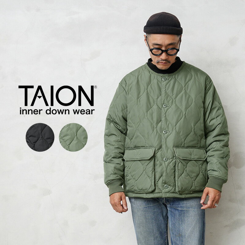 TAION MILITARY CREW NECK DOWN JACKET タイオン インナーダウン ジャケット アウター メンズ レディース ミリタリー クルーネック 防寒 ブラック ダークネイビー ダークオリーブ 黒 104B2ML-1