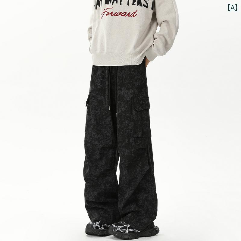 メンズ ジャケット シャツ Wukongは 大理石の ダーク パターンの プリーツ 空挺 部隊 オーバー オール メンズ アメリカン ストリート ワイド レッグ コーデュロイ パンツを しています