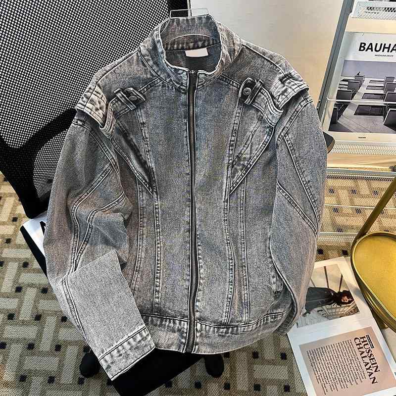 ジャケット メンズ デニム アメリカン レトロ 切り替え ワークジャケット ブルゾン ゆったり 灰色 M L XL XXL XXXL