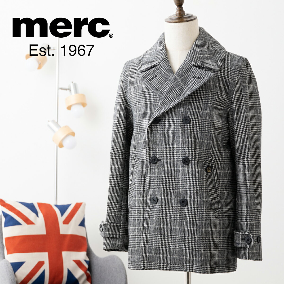 メルクロンドン メンズ ピーコート チェック柄 Merc London Pコート プリンス オブ ウェールズ ブラック モノトーン ダブルボタン モッズファッション ギフト トラッド