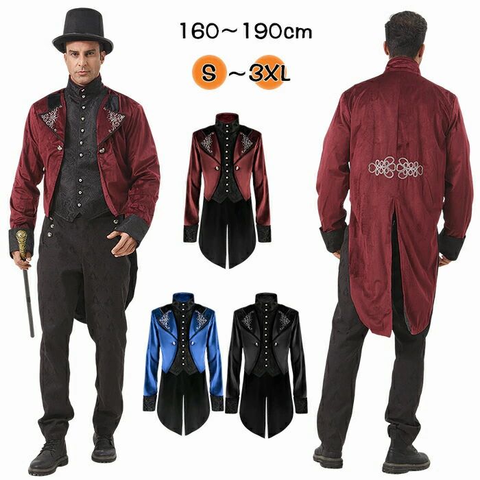 タキシード コスチューム メンズ ダンス衣装 ジャケット トップス 宮廷服 ステージ衣装 プリンス 王子様 マジック 魔術師 中世ヨーロッパ 変装 イギリス風 紳士 エレガント ジャケット 撮影用 仮装 万聖節 アイドル衣装 舞台服 演出服 M L XL 2XL 3XL
