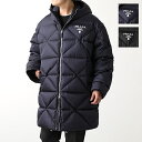 PRADA プラダ ダウンコート Re-Nylon リナイロン SGC042 1WQ8 メンズ キルティング ロゴ ダウンジャケット ロング丈 フード付き カラー2色