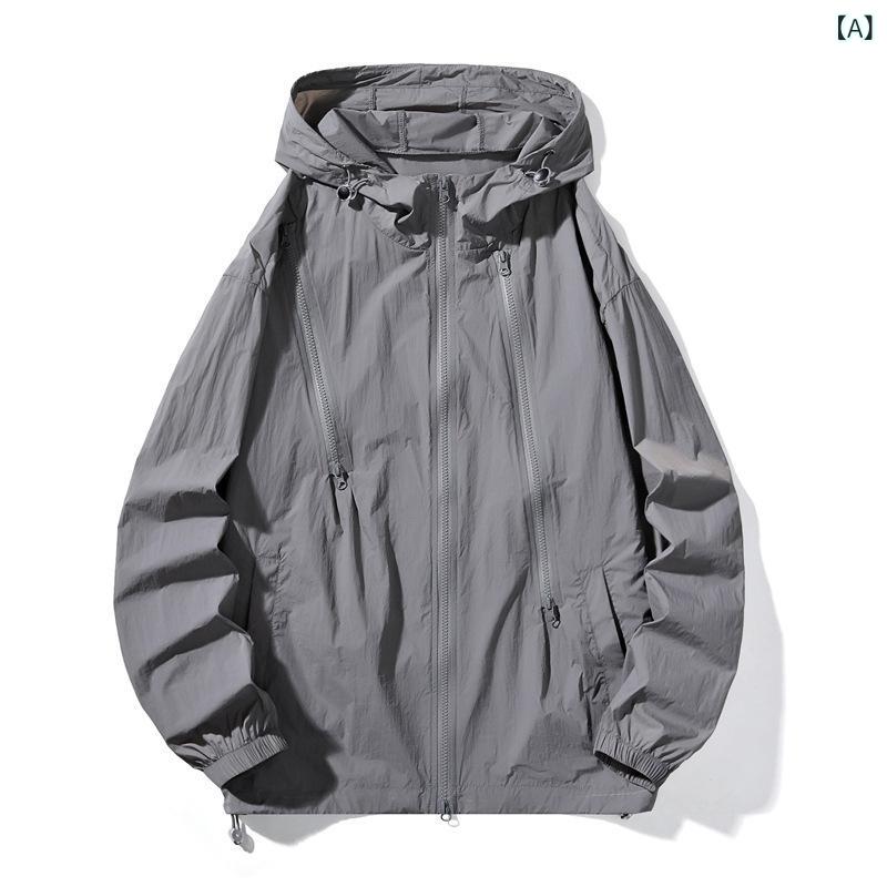 UVカットパーカー 男女兼用 カップル向け アウトドア 登山 トレッキング スポーツ レジャー 春夏 薄手 軽量 速乾 通気性 フード付き ゆったり ライトカラー ナイロン ポリエステル