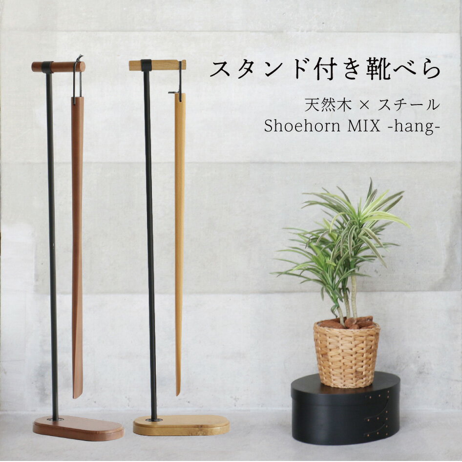 靴べら ロング W11.5 × D21 × H79.5cm スタンド セット 靴ベラ くつべら スリム ロングサイズ 長め 長い 立ったまま おしゃれ 木製 スチール 吊り下げ 完成品 軽量 軽い ナチュラル ブラウン【Shoehorn MIX -hang-】