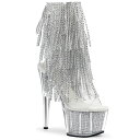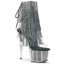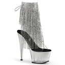 PLEASER【取り寄せ】プリーザー・フロストヒールラインストーンフリンジ厚底ブーツサンダル/品番:ADORE-1017RSFT/ADO1017RSFT/17cmヒール/衣装/シューズ/レディース/ダンス/靴/ポールダンス/コスプレ/ピンヒール/ドレス/キャバ嬢/ハイヒール/シルバー×クリア/銀×透明