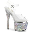 PLEASER【取り寄せ】プリーザー・ラインストーンプラットフォーム厚底クリアサンダル/品番:ESTEEM-708DM/ESTM708DM/17cmヒール/ドレス/二次会/サンダル/キャバ嬢/ダンサー/ポールダンス/ピンヒール/衣装/靴/透明/オーロラマルチ/ソール下シルバークローム/シルバー/銀