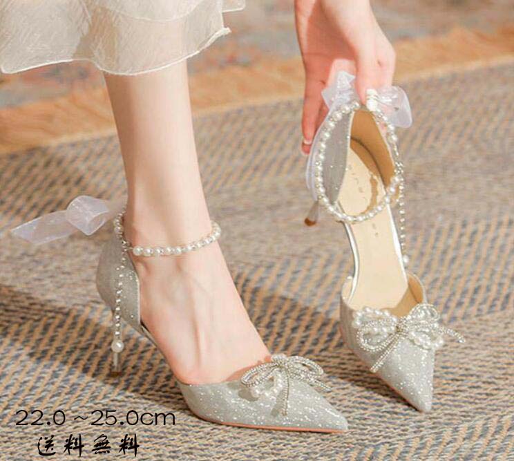 送料無料 パンプス ブライダルシューズ キラキラ 美脚 シューズ パーティシューズ ストラップ レディース ポインテッドトゥ ハイヒール ヒールサンダル ピンヒール 結婚式 発表会 シルバー 銀 サンダル レディース 夏 ベルト 靴 女性 大人 美脚 シューズ シンプル 22.0~25.0