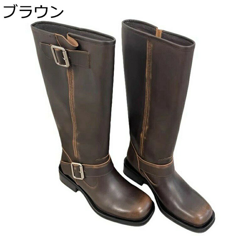 騎士ブーツ レザー 本革 ロングブーツ レディース ジップアップ バイクブーツ ローヒール フラット カジュアル ファッション シンプル 撥水 膝下 女子力 通勤 オフィス 日常 大きいサイズ