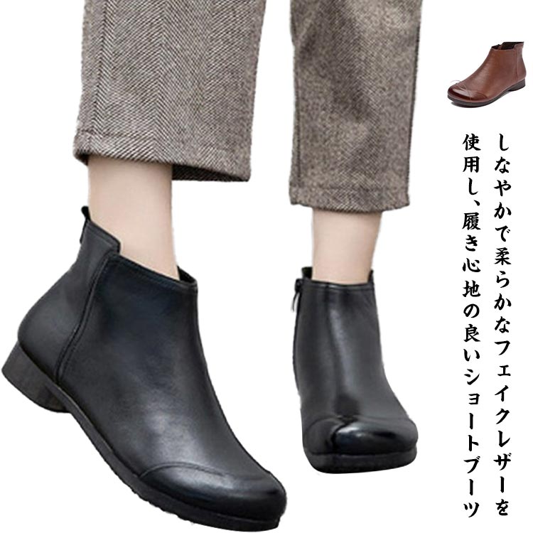 靴 コンフォート 大きいサイズ ローヒール フラットヒール 疲れない 柔らかい レディース ジップアップ 走れる ぺたんこ お手入れ簡単 コンフォート シューズ 秋冬 春 裏起毛 ブーティ 痛くない トレンド 通勤 ショートブーツ