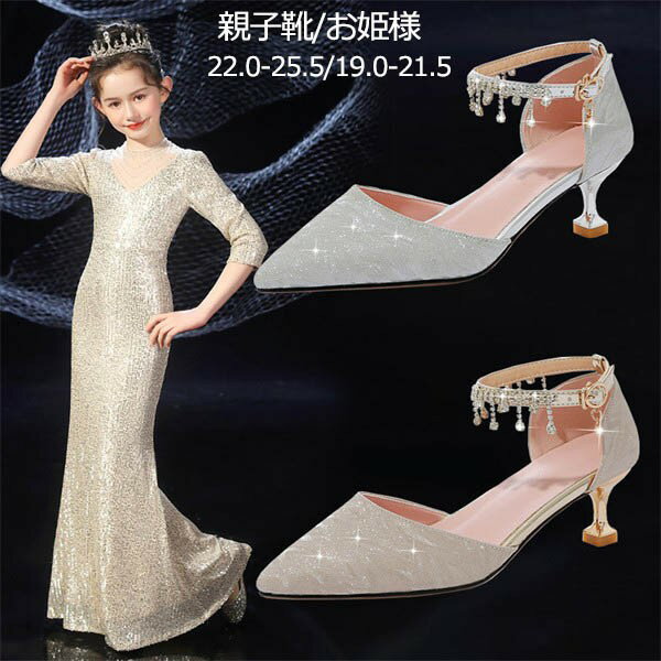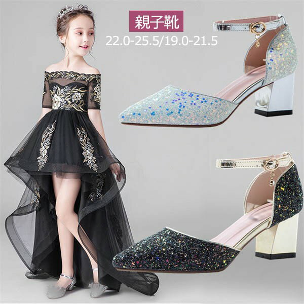 親子靴レディース靴女の子用大人用フォーマルシューズフォーマル靴子供靴キッズプリンセスシューズハイヒールリボンきらきら女児キッズシューズ子供シューズ子ども靴可愛いコンクールダンス公演発表会結婚式卒園式卒業式入学式z7f6