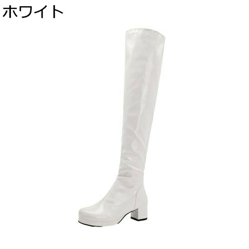 ニーハイブーツ エナメル レディース ロング チャンキーヒール 秋冬 美脚 ロングブーツ コスプレ オーバーニー サイハイブーツ 長靴 厚底 ストレッチ 履きやすい COSPLAY ダンス 舞台 男女兼用