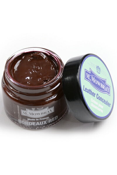 (できるだけ忠実に再現するよう努力しておりますが、ディスプレイ画面等の環境上、ページで見た色と実際の商品の色とは多少違う場合がございます。ご不明な点はお問い合わせください。) M.モゥブレィ レザーコンシーラー カラーチャート(30色)+6色 M.モゥブレィ レザーコンシーラー 全30色のカラーチャートです。全ての色を展開していますが、一時的に欠品もあります。次回入荷がありますので少しお待ちください。 レザーコンシーラー使用手順 黒い靴を白く塗り替えることもできると言われ、水や油に強い顔料系の着色クリームです。 M.モゥブレィ レザーマニキュアは小さな傷や部分に効果がある塗料で、レザーコンシーラーは大きな部分にも使いやすい顔料です。 レザーコンシーラーは靴の場合はM.モゥブレィステンリムーバーで、小物の場合はクリームエッセンシャルで軽く汚れを落として使います。塗ってから10分以内くらいは定着しませんのでクリーナーなどで色をリセットすることもできます。 キズや色アセが少ない場合は布で、大きな場合はペネトレイトブラシで塗布するのが便利です。 かなり色褪せした、レザートートバッグ(レッド)全体をケアしてみましたがかなりキレイになりました。(劣化した状態は修復できませんでした)。詳しくは「ご使用手順」にも書いてあります。 M.モゥブレィ コンシーラー調合例 レザーコンシーラーは色を調合することによりオリジナルの色を作ることができます。色と分量の事例ですので参考にしてください。M.モゥブレィ レザーコンシーラー 色あせ、キズ・着色用 ボルドーレッド M.MOWBRAY LEATHER CONCEALER BORDAEUX RED M.モゥブレィより顔料入り補修・着色クリーム 全30色が新発売されました。顔料系ですので、天然皮革から合成皮革まで、またバッグなど面積のあるものまで、色あせ、キズなどを着色して目立たなくさせることができます。塗って10分位なら革用クリーナーでリセットできるので初心者でも安心して使えます。 仕様、素材、色: 【商品名】M.モゥブレィ レザーコンシーラー ボルドーレッド 天然皮革・合成皮革用顔料系コンシーラー キズ、色あせ、補修・着色クリーム/M.MOWBRAY LEATHER CONCEALER DARK BORDAEUX RED 【用途】スムースレザーの靴、ブーツ、パンプス、ハンドバッグ、財布、ベルト等 【効果】キズ 色褪せの補修・着色し目立たなくできる 【特徴】全30色展開ですが、レザーコンシーラーは混色(色の調合)がよく自分の好みの色を作れます、塗って間がない場合は靴クリームなどでリセットできます。 【容量/タイプ】15ml クリームタイプ/ガラスビン入り 【カラー・No】キャメボルドーレッドル(BORDAEUX RED全30色)/ 30 【原産国】フランス製