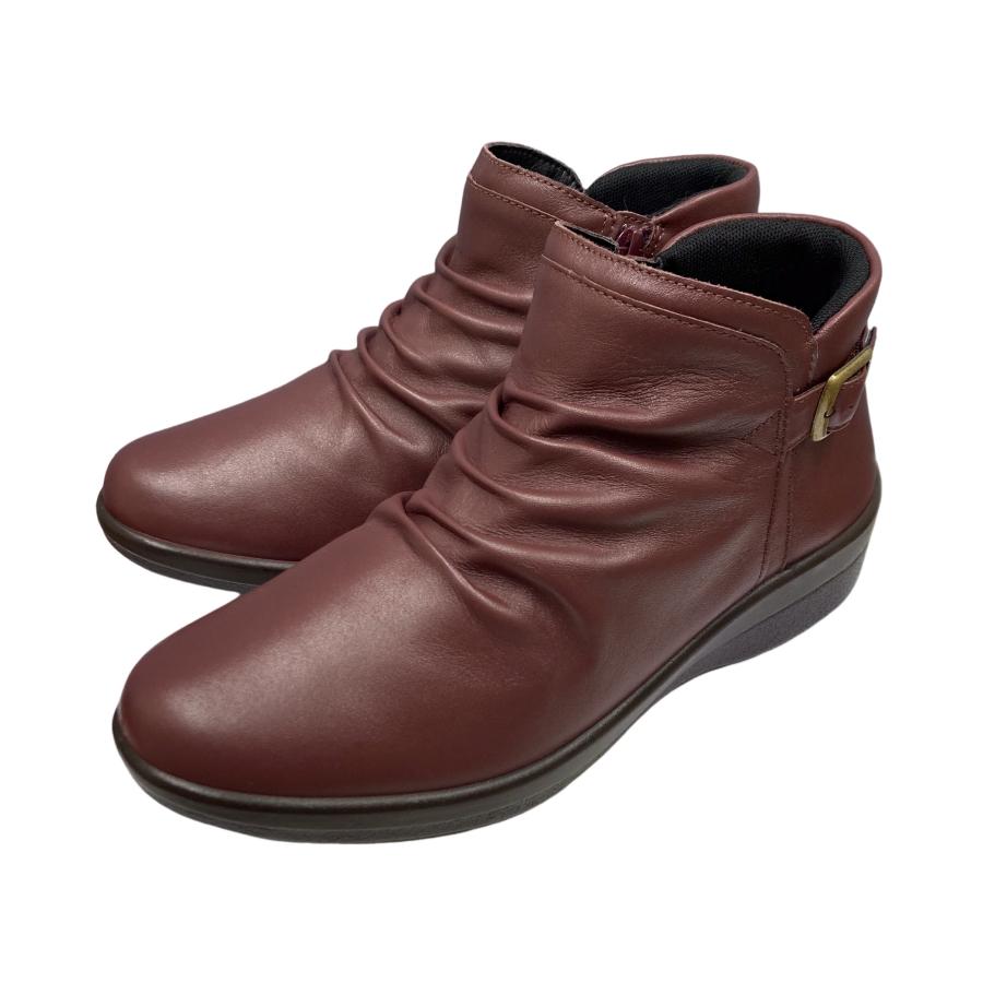 ブーツ アキレスソルボ ASC 5220 ボルドー レディース 幅広 4E 牛革 歩きやすい ファスナー付き セール