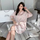 シャツ風 パジャマ レディース 夏 ルームウェア ワンピース 七分袖 ゆったり 部屋着 前開き ネグリジェ ランジェリー ナイトガウン シルクタッチ