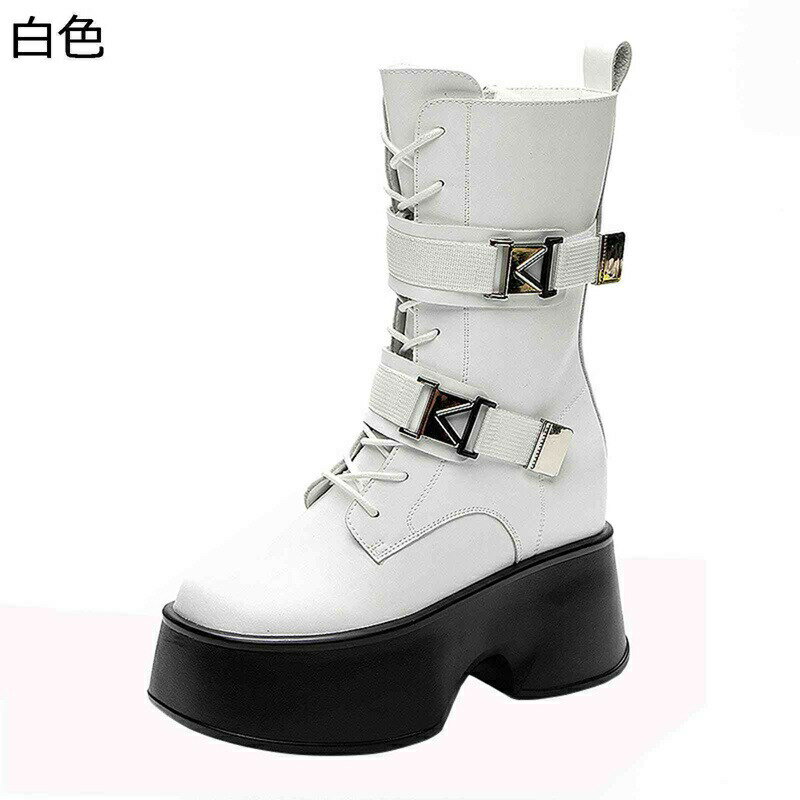 ロングブーツ ソックスブーツ レディース 厚底靴 9cmアップ ストレッチ Y2k 白 サブカル系 プラットフォーム 革靴 足細 歩きやすい 大人 クラシック 秋用 防水防滑 乗馬 バイク用 ストリート