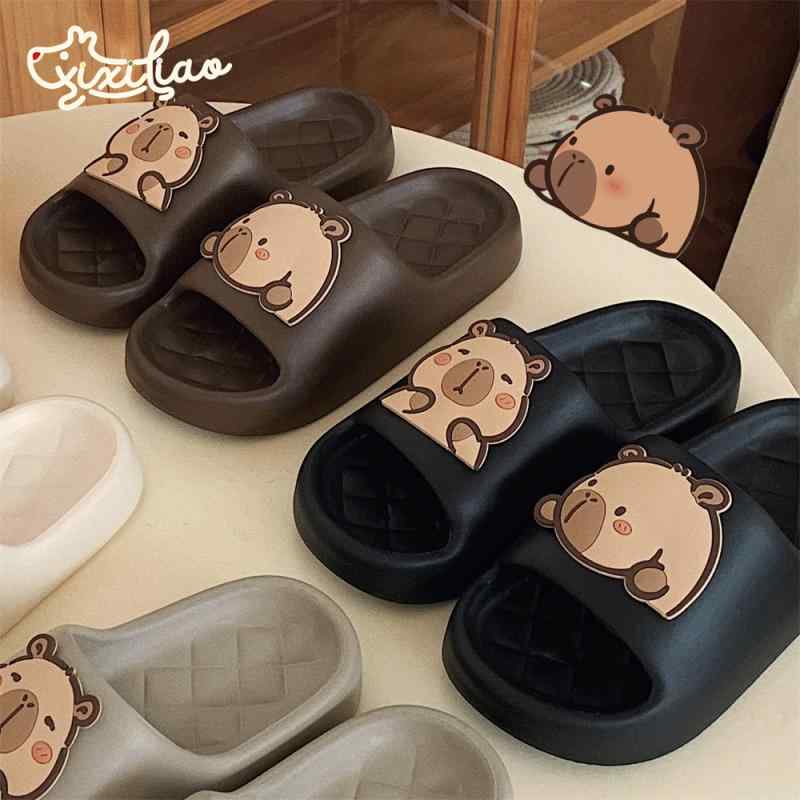 スリッパ 夏 メンズ レディース兼 かわいい カピバラ カップル カジュアル ホーム バスルーム フラット