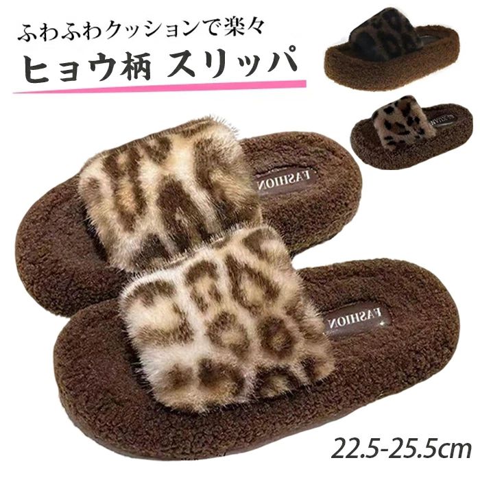 ヒョウ柄 ルームシューズ レオパード レディース スリッパ 柔らかい ふわふわ 暖かい パイル生地 滑り止め ファーサンダル フラットシュ