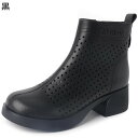 サマーブーツ レディース 透かし彫り ブーツサンダル チャンキーヒール 美脚効果 ラウンドトゥ パンチング サイドジッパー ママシューズ エレガント ブーサン コンフォート カジュアル 軽量