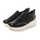 スニーカー レディース きれいめ 厚底 MUUM ムーム インヒール ウエッジ スリッポン ビジュー パンチング サイドゴム 黒 シルバー 歩きやすい 履きやすい スタイルアップ 3e