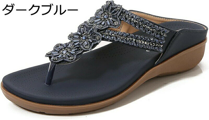 トングサンダル ウェッジヒール レディース T-ストラップ ビーサン ボヘミアン ヴィンテージ ビーズ ラインストーン 細めストライプ ウエッジソール ビーチサンダル 大きいサイズ おしゃれ 美脚