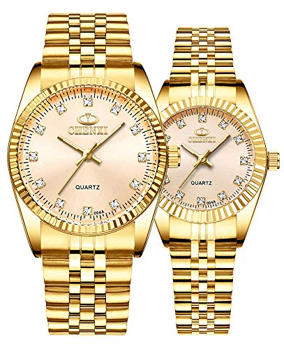【中古】【未使用・未開封品】カップルウォッチ スイスブランド ゴールデンウォッチ メンズ レディース ステンレススチール 防水 クォーツウォッチ, ゴールド, クォーツ腕時計