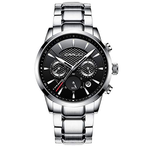 【中古】【未使用・未開封品】CRRJU ブランド メンズ ビジネス カジュアル クロノグラフ クォーツ 防水 腕時計 ブラック ステンレススチールストラップ シルバーブラック