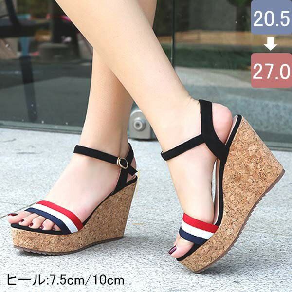 サンダル レディース ヒール ウエッジソール サンダル ストラップ ウェッジソール 厚底 シューズ 黒 美脚 靴 小さいサイズ 大きいサイズ 女性 大人 かわいい 夏 通勤 おしゃれ 母の日 プレゼント 20.5 21.0 21.5 25.0 25.5 26.0 26.5 27.0