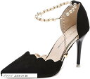 ベイブスター パンプス 5cmヒール おしゃれ ベルト付き 結婚式 パーティー ドレス 上品 シューズ ハイヒール ピンヒール 靴 パール アンクル ストラップ 24.5cm B472BK-245(ブラック, 24.5 cm)