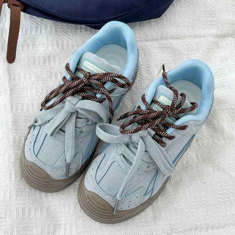 スニーカー レディース ローカット 厚底 ブルー ドイツ軍 復刻 トレーニングシューズ レースアップ 紐靴 運動靴 歩きやすい 普段使い カジュアル