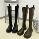 レディース ロング ブーツ 2024年 秋 冬 新作 薄 底 フラット ハイヒール ソフトレザー レッグ ストレート ナイト ブーツ スリム レディース ロング ブーツ