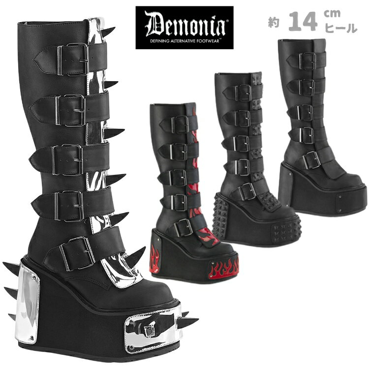 DEMONIA【取り寄せ】デモニア・トランスフォーマシールドパネル厚底ロングブーツ/品番:TRANSFORMER-800/ TRA800/14cmヒール/ゴシック/厚底シューズ/レディース/コスプレ/衣装/ショートブーツ/ウェッジソール/靴/ベルトブーツ/スパイクブーツ/ビーガンレザーブラック/合皮黒