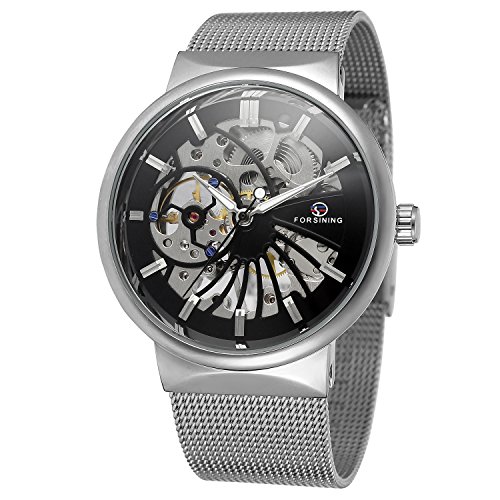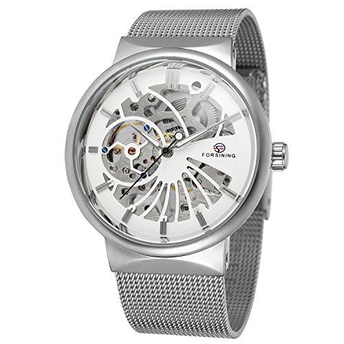 【中古】【未使用・未開封品】FORSINING メンズ 人気 機械式 手巻き 超薄型 ステンレススチール ブレスレット メッシュ スケルトン 腕時計